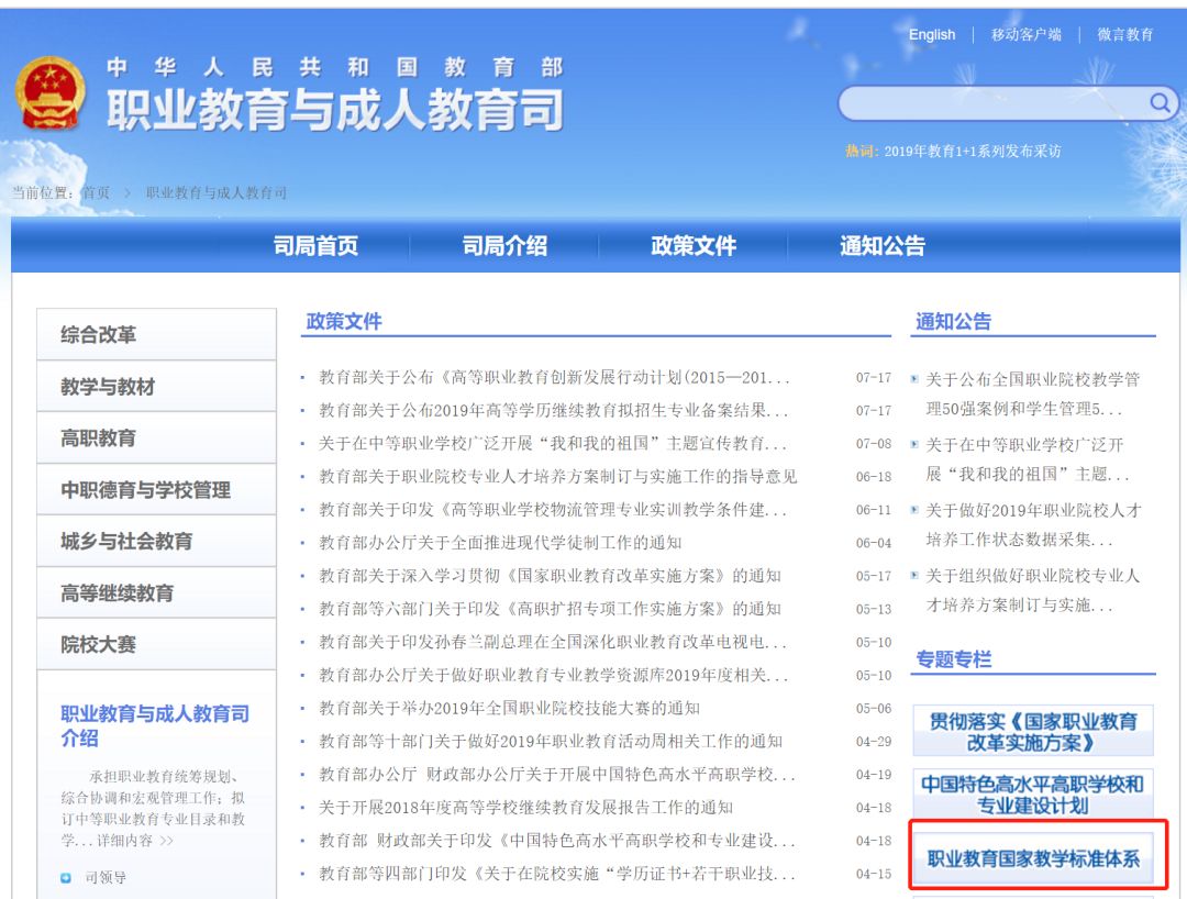 为贯彻落实《国家职业教育改革实施方案》,进一步完善职业教育国家教学标准体系,太阳成集团tyc组织完成了《高等职业学校种子生产与经营专业教学标准》等首批347项高等职业学校专业教学标准的修(制)订工作,现予以发布,自发布日起执行。 标准具体内容详见“职业教育国家教学标准体系”专题(链接http://www.moe.gov.cn/s78/A07/zcs_ztzl/2017_zt06/17zt06_bznr/bznr_gzjxbz/)。