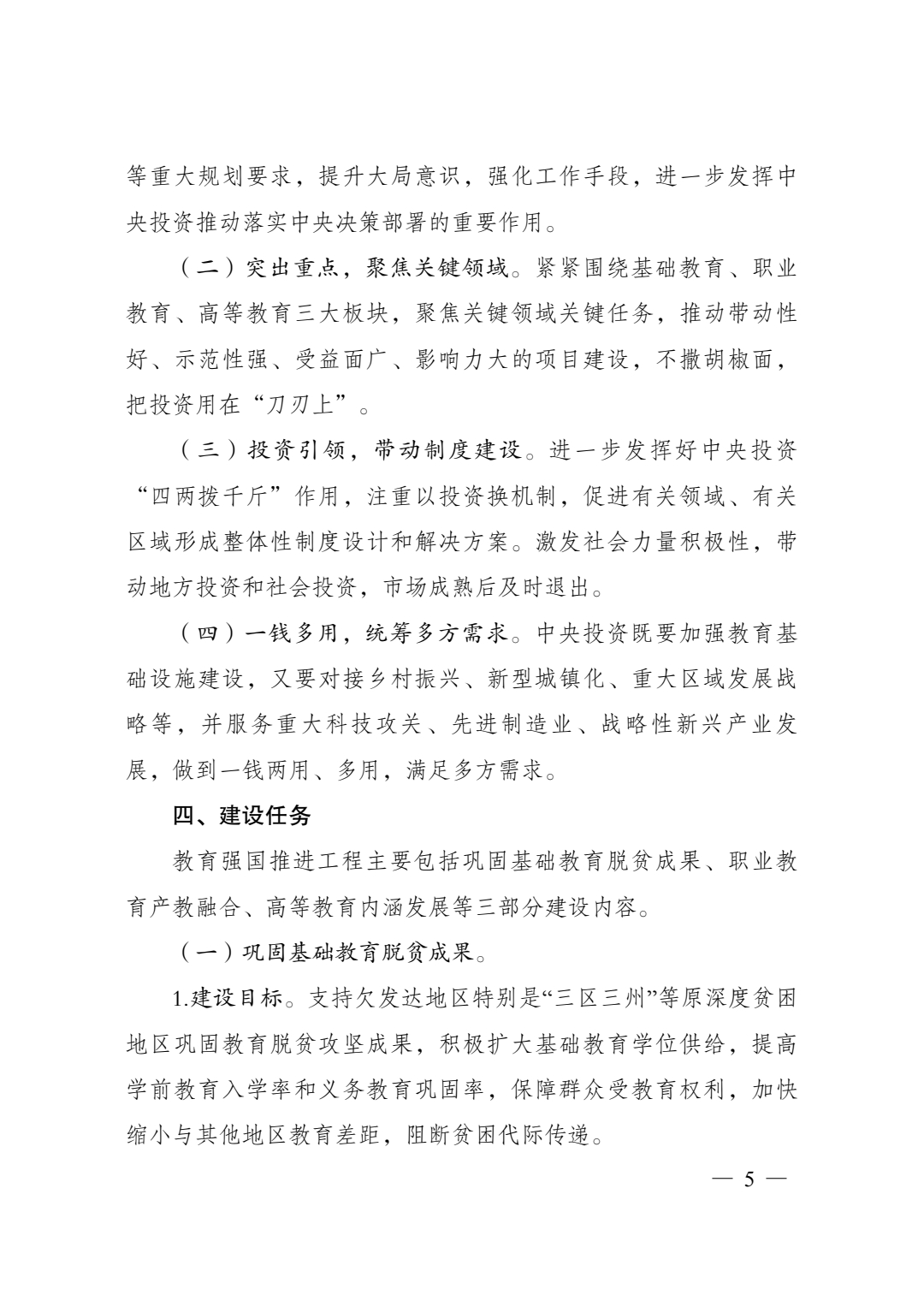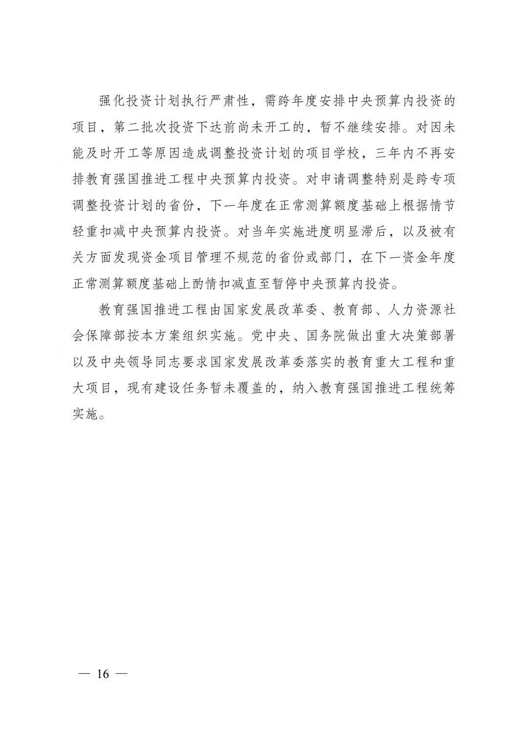 各地和有关部门要切实承担起教育强国推进工程的项目实施主体责任,建立工作机制,落实建设方案,统筹资金渠道,组织编制年度投资计划并及时分解转发落实,有序推进实施,确保工程建设质量和效益。