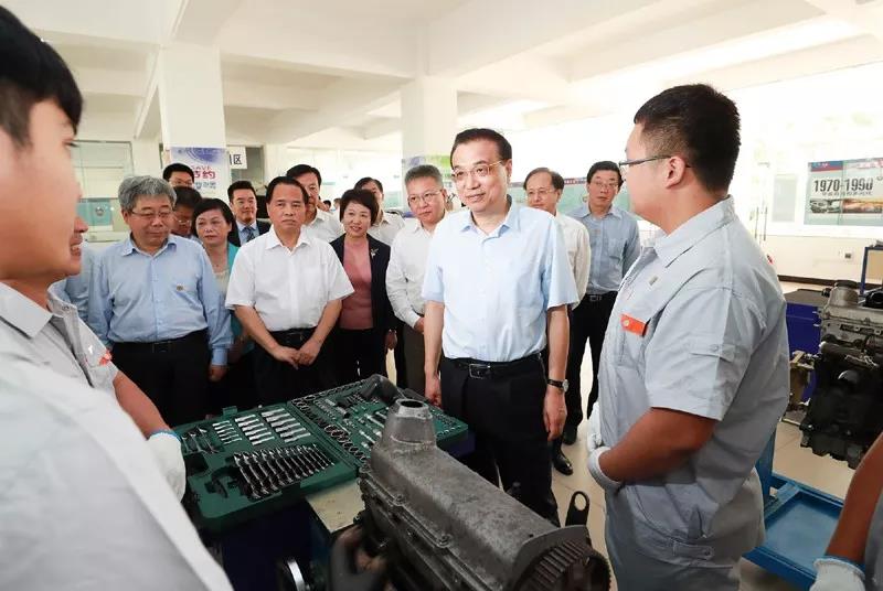 在实训车间,李克强勉励同学们说,国家不仅需要高端科研人才,也非常需要高技能人才,你们有真正的技术,就业门路就广,收入也会较高。希望大家注重培养专业精神、职业精神、工匠精神,这是成为人才很重要的素质。