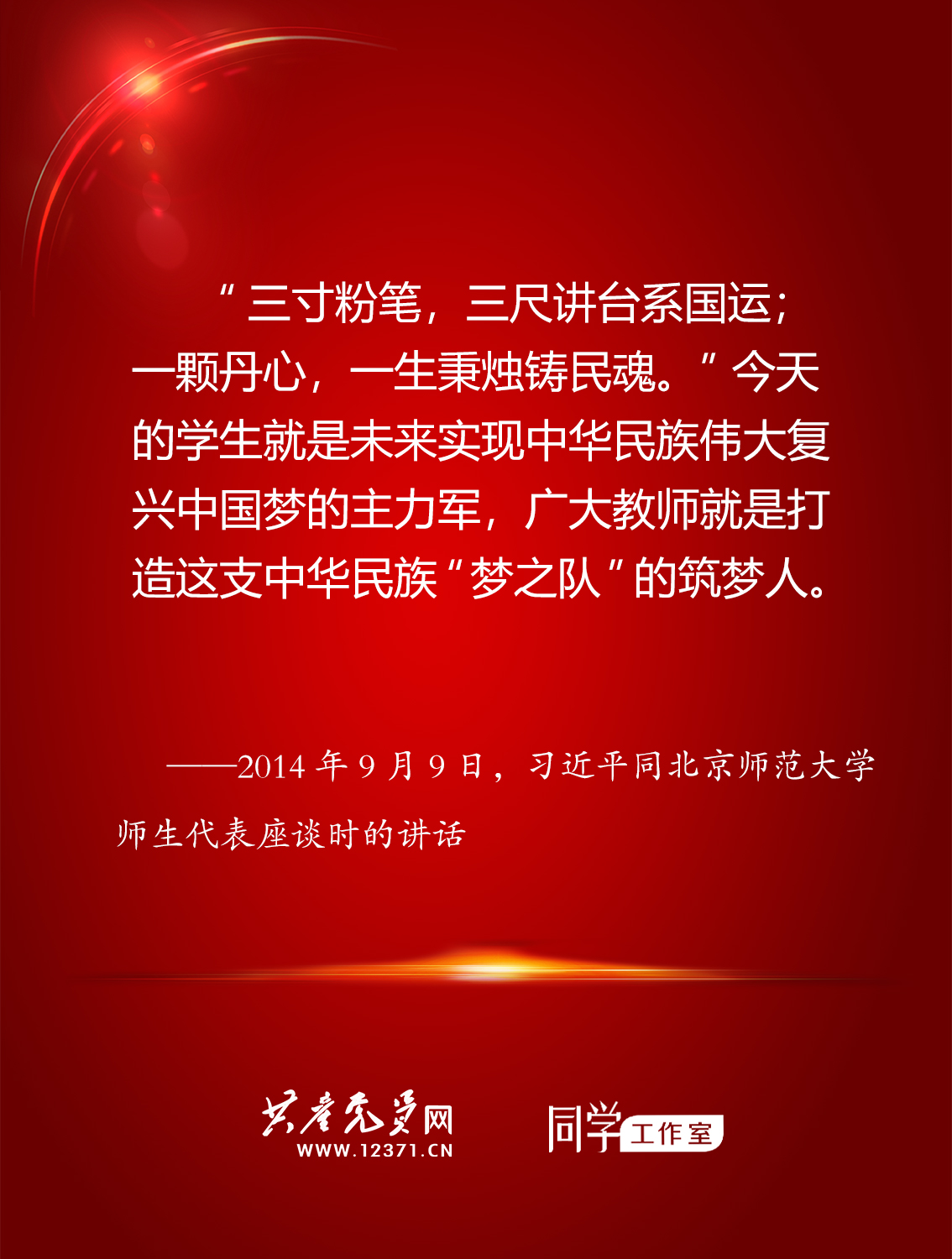 “三寸粉笔,三尺讲台系国运;一颗丹心,一生秉烛铸民魂。”这是习近平总书记对教师的高度评价。在第三十六个教师节到来之际,让我们一起重温习近平总书记在不同时间、不同场合对广大教师提出的那些殷切希望。