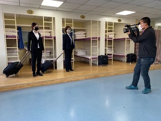 “形体礼仪、安检实训、报站要求等实训很适合直播,教师可以反复、形象地示范动作,让学生理解并消化。但课下,学生还要不断反思、钻研、创新,才能真正做到熟能生巧。”王繁荣说。
