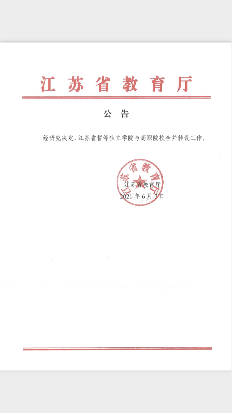【行业热点】江苏暂停独立学院与高职院校合并转设