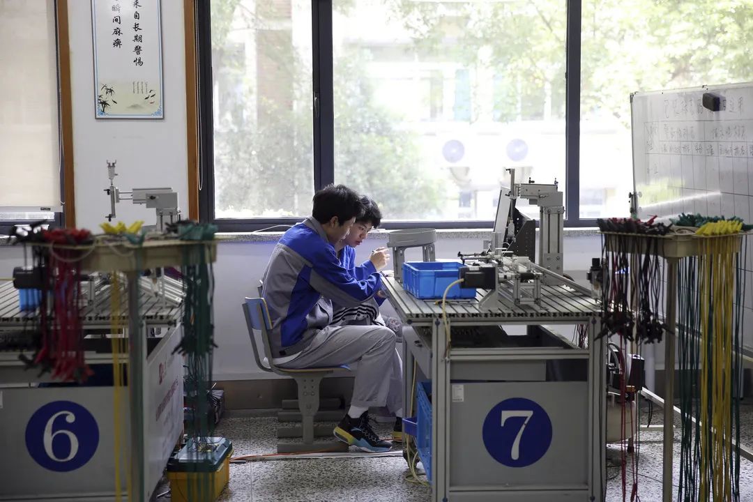 鲁晓阳是浙江省特级教师,教电气专业,讲话风趣,能想象他在课堂上,也是乐于引导、充满活力的老师。说到“低头走路”,鲁晓阳又挺起胸膛,昂起头,做了个有点夸张的自信姿态:“你看,这就是职高学生与普高学生最大的区别,普高的学生们都是昂头走路的。”