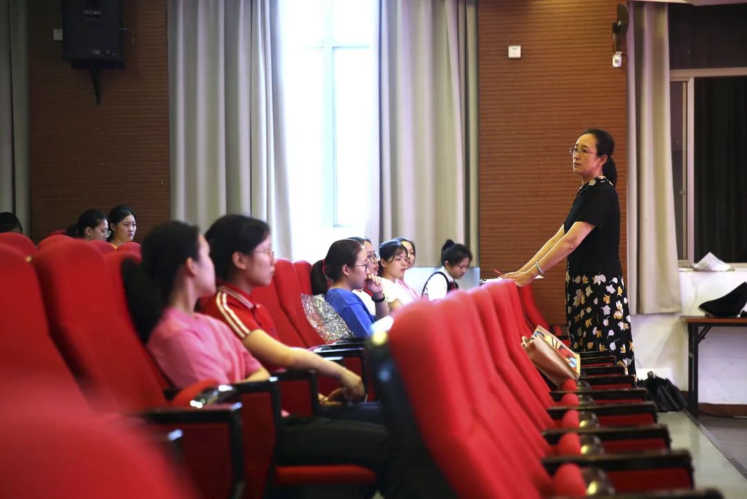 人民职校的中本班在7月1日做了毕业汇报演出,很多家长都到现场观看。图为排练时班主任做总结(于楚众 摄)