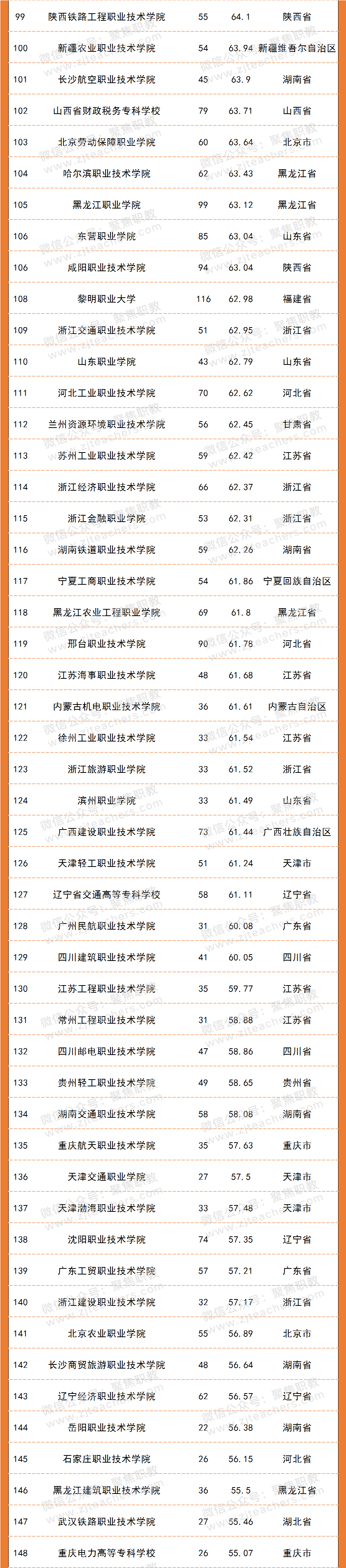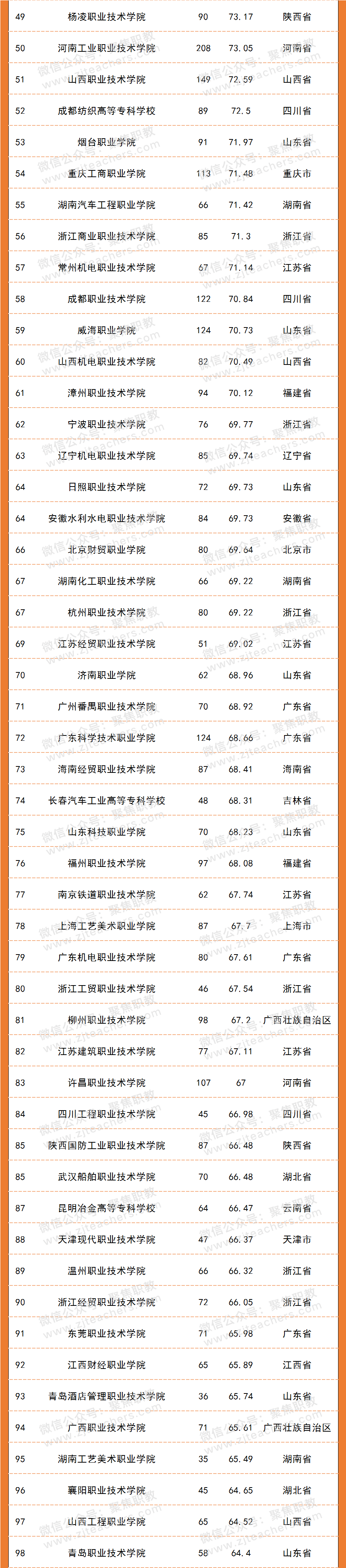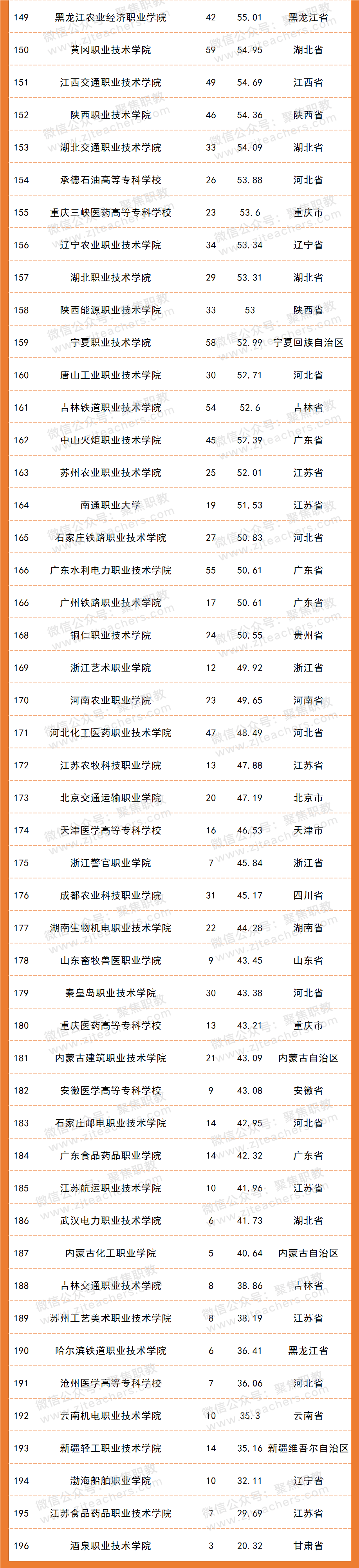②不再发布示范高职和骨干高职子榜单。随着高等职业院校重点支持政策的变化,目前正处于“双高”建设阶段,故不再发布示范高职和骨干高职两类子榜单,只发布“双高”建设学校子榜单(一般高职范围界定为:除了“双高”建设学校以外的高等职业院校)。