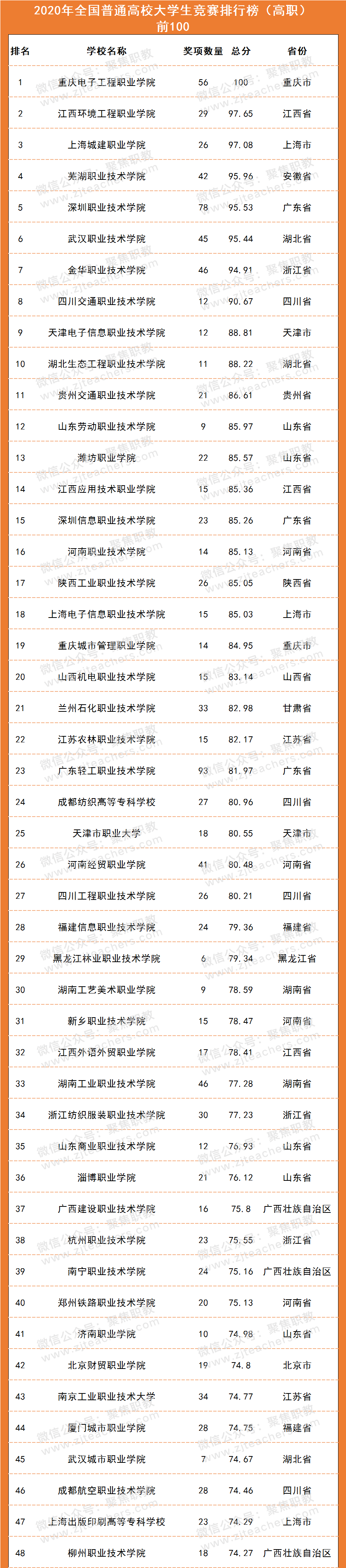 2020年全国普通高校大学生竞赛排行榜(高职前100)