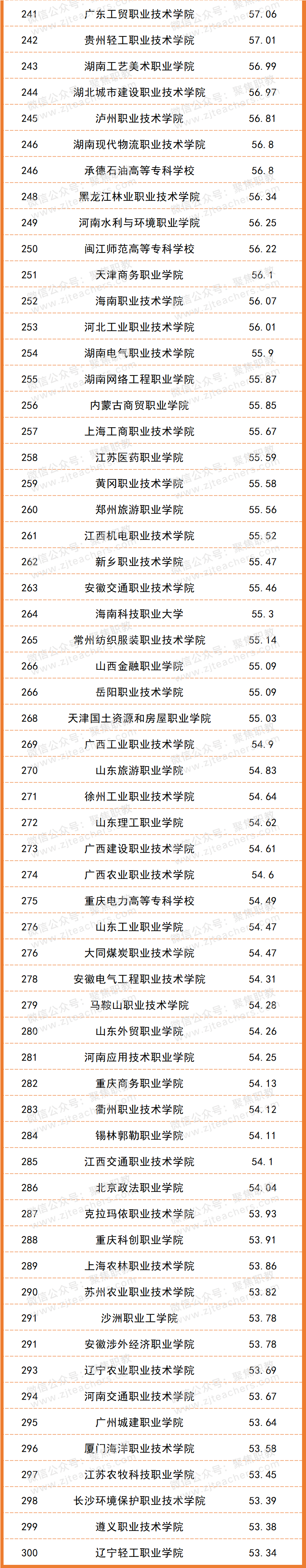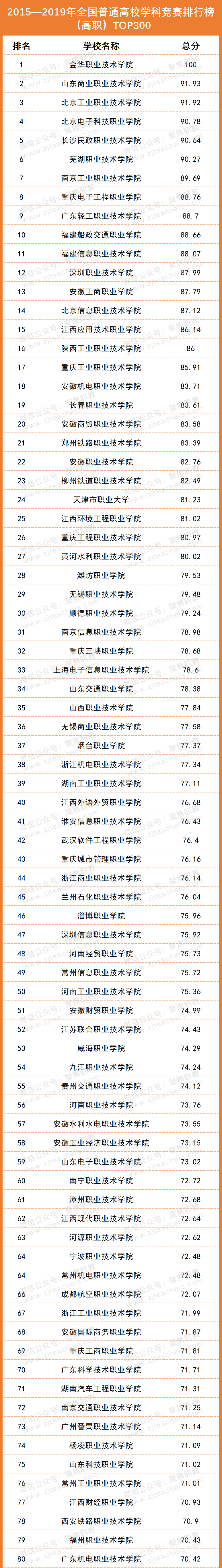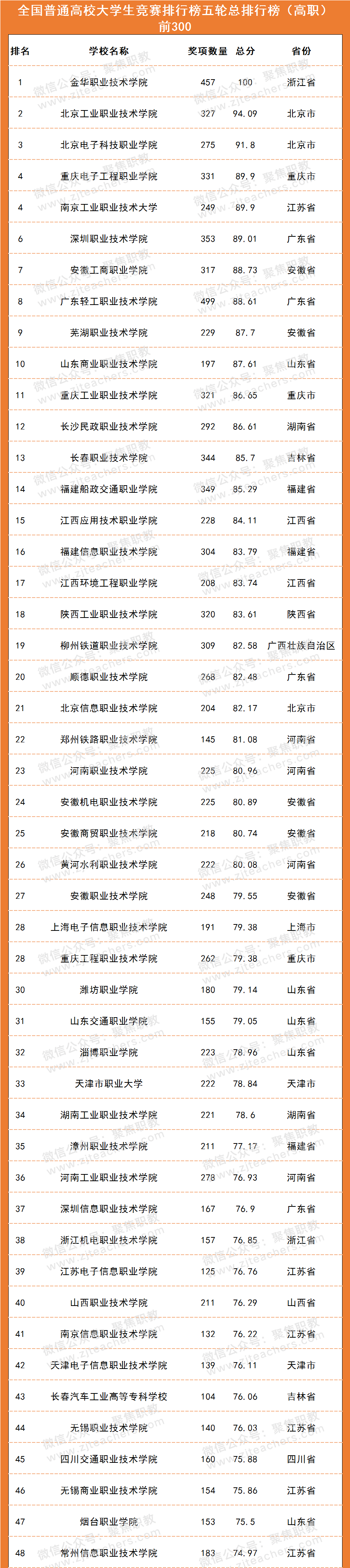 全国普通高校大学生竞赛排行榜五轮总排行榜(高职前300)