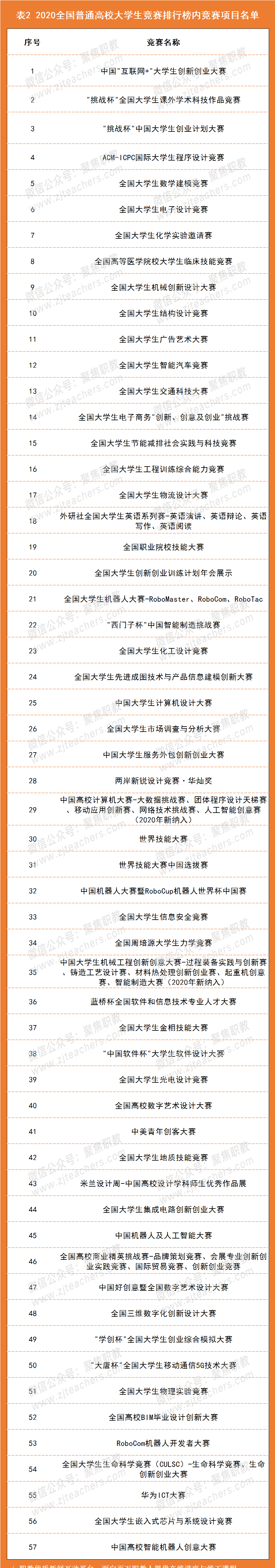 2020全国普通高校大学生竞赛排行榜内竞赛项目名单
