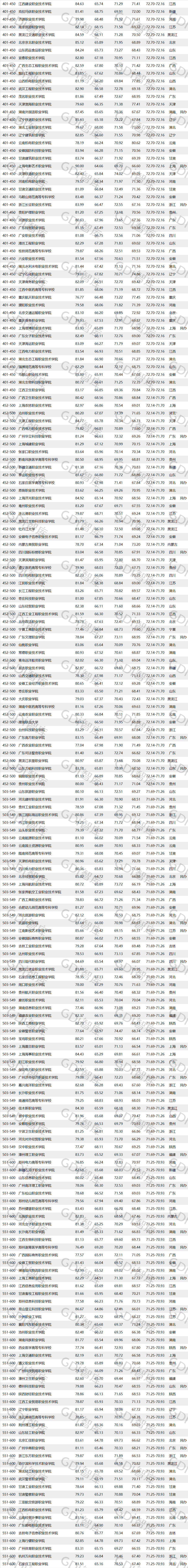 统计得出,“GDI高职高专榜”中包括837所公办院校,164所民办院校,排名前121位的院校均属公办性质。前300强中有5所民办院校,分别为广州城建职业学院(77.50)、重庆交通职业学院(77.22)、广东岭南职业技术学院(76.01)、重庆科创职业学院(73.83)和北京科技职业学院(73.82)。