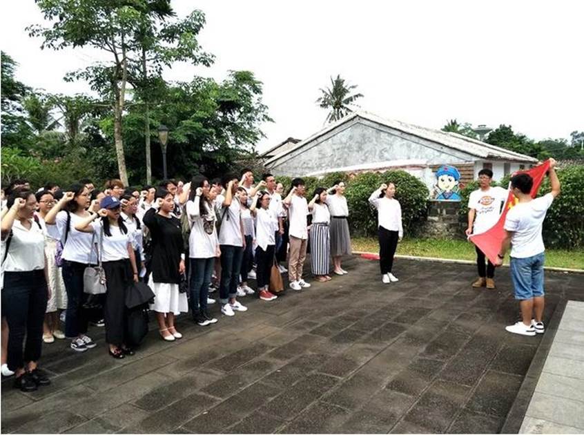 海南大学外国语学院开展纪念建党97周年“不忘入党初心,肩负时代使命”入党宣誓暨外文演讲展示活动 图/海南大学