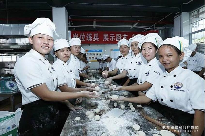 海南省经济技术学校中西面点专业班的学生们展示自己制作的中式面点 张劲松摄