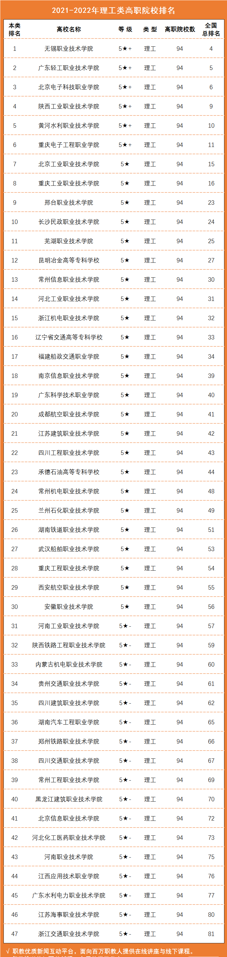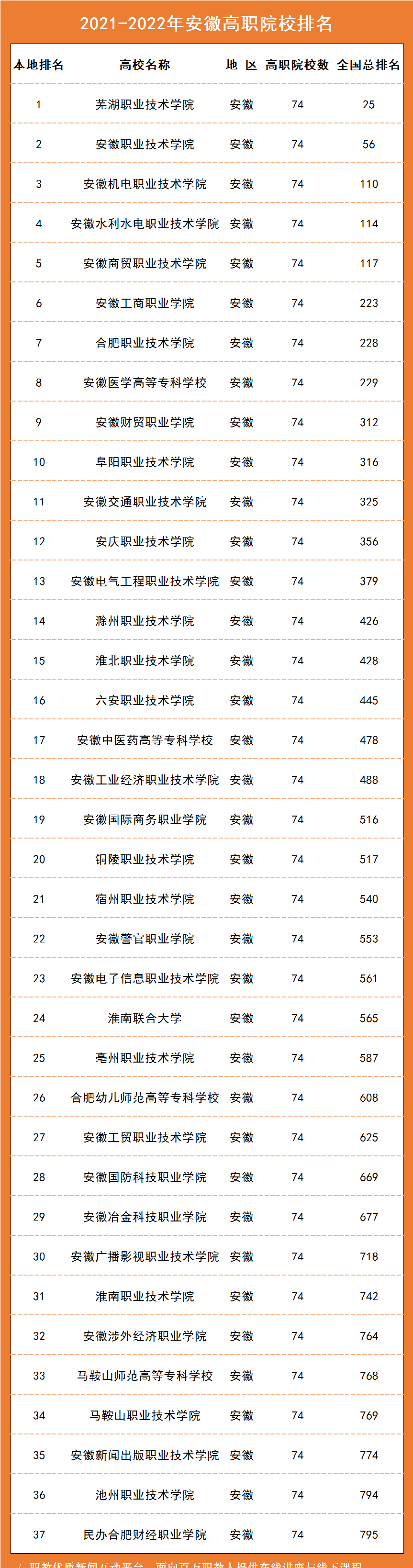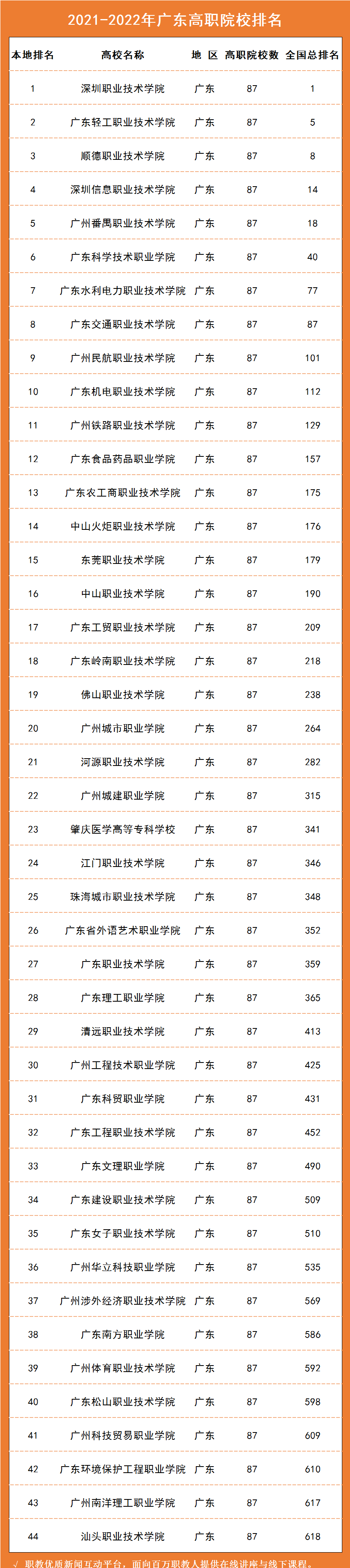近日,“金平果”发布2021-2022年中国高职院校分地区竞争力排行榜与分类型竞争力排行榜。
