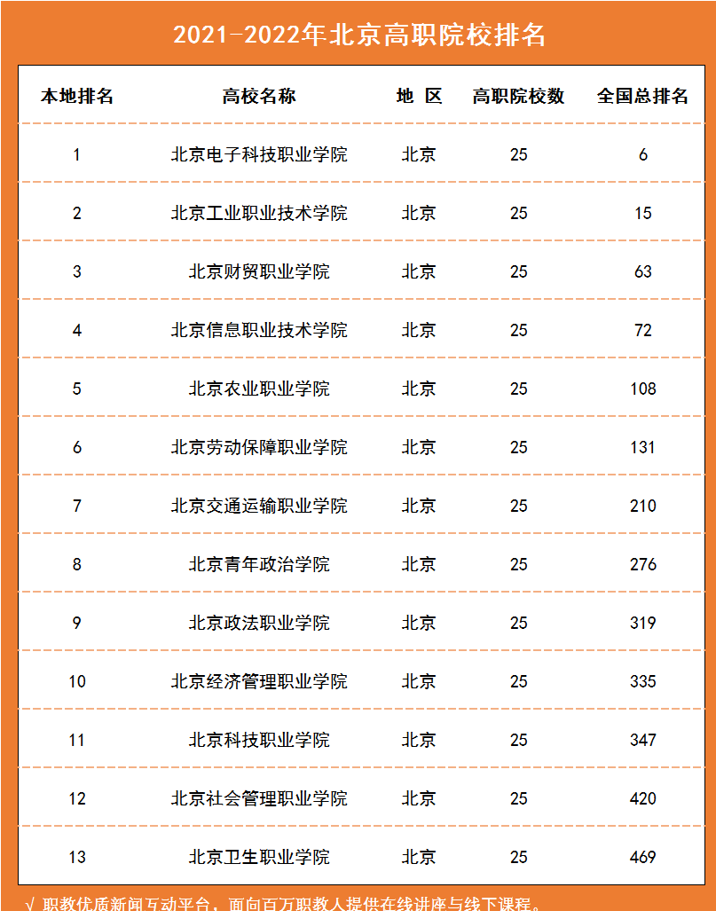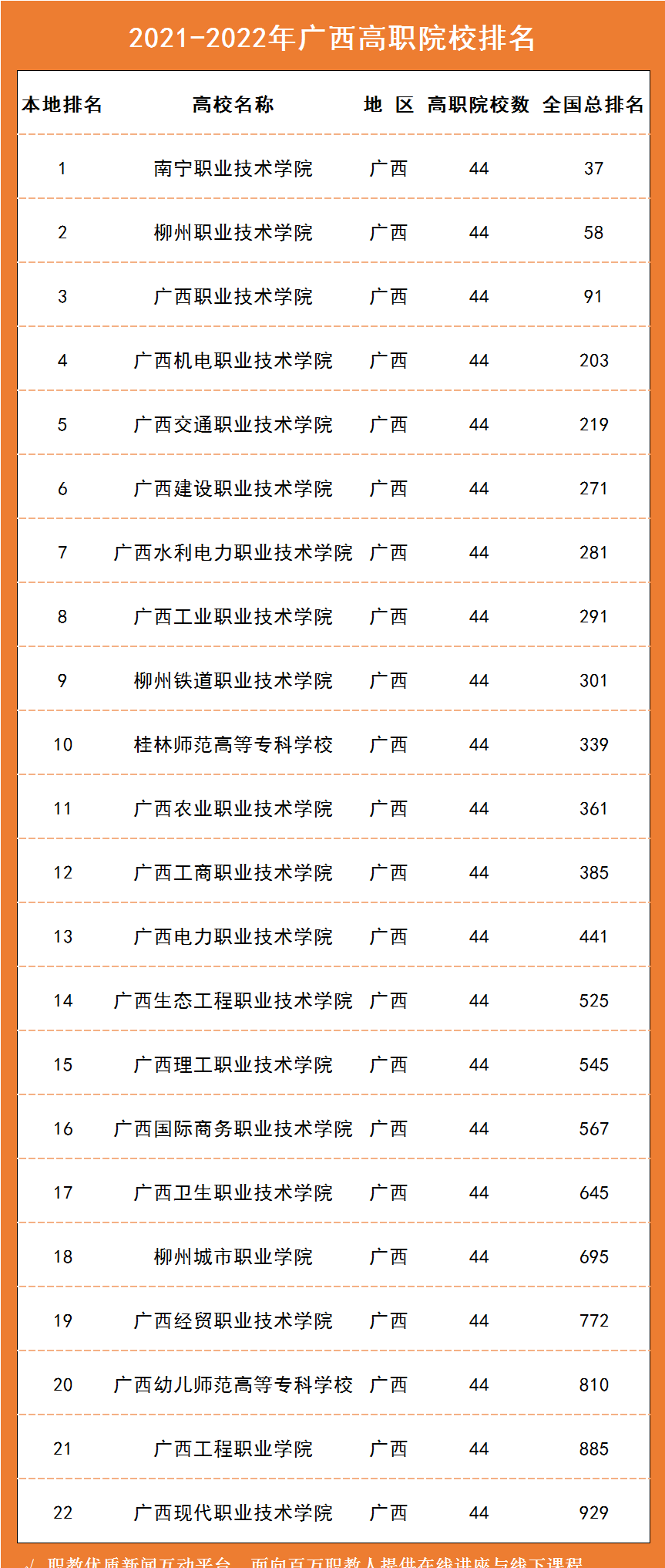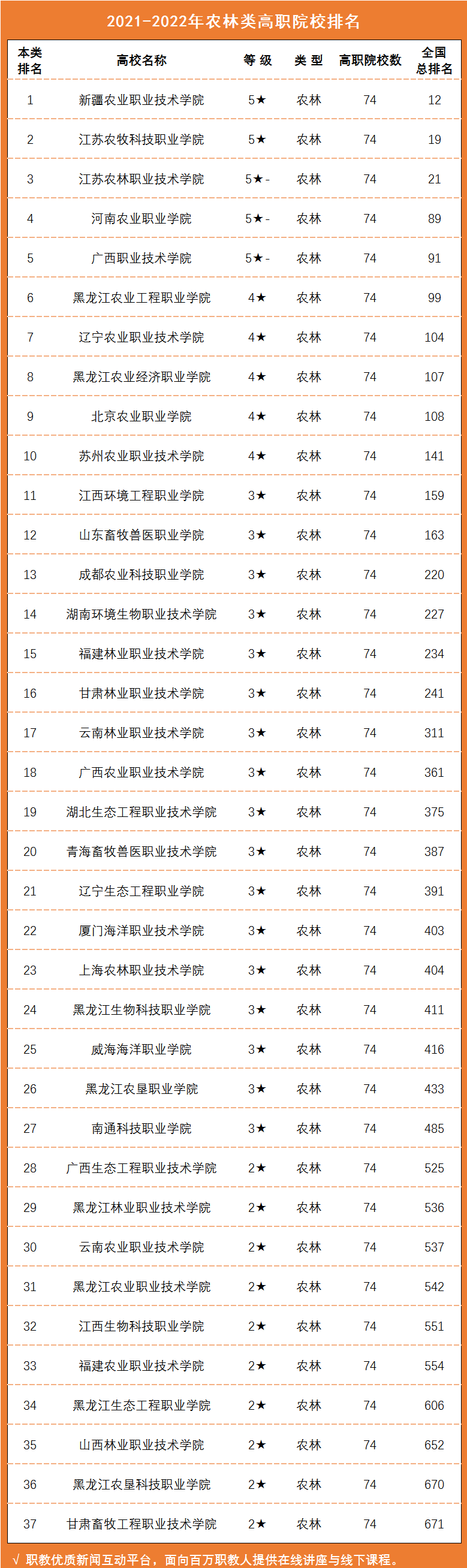 近日,“金平果”发布2021-2022年中国高职院校分地区竞争力排行榜与分类型竞争力排行榜。