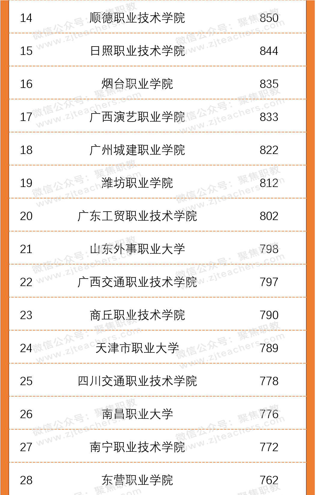 从2020年高职院校专任教师总数百强榜单中可以看出,有5所院校专任教师总数破千,分别为深圳职业技术学院(专任教师1434名)、广东科学技术职业学院(专任教师1221名)、广东农工商职业技术学院(专任教师1128名)、淄博职业学院(专任教师1079名)、陕西工业职业技术学院(专任教师1069名)。