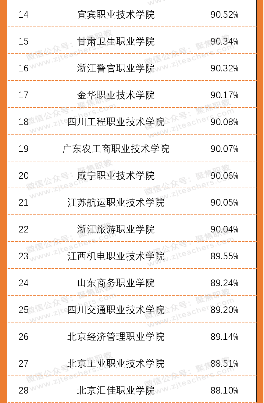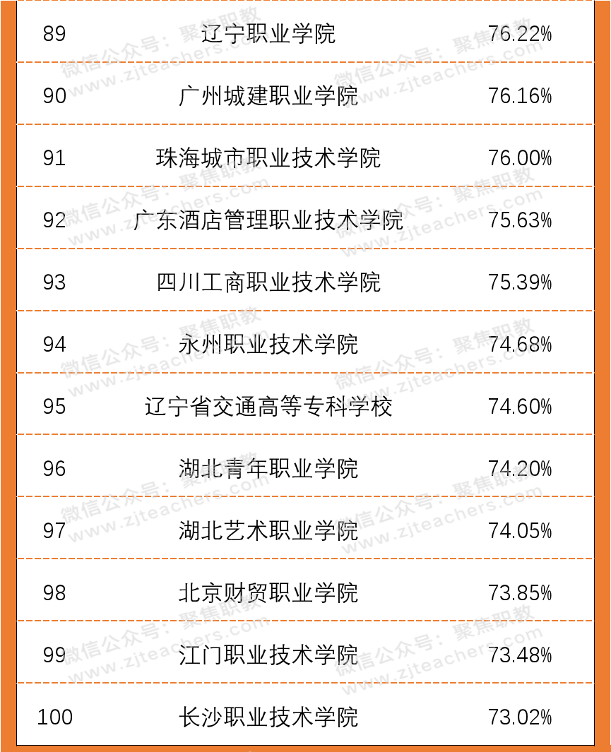 从2020年高职院校双师素质专任教师百强榜单中可以看出,广东水利电力职业技术学院以98.13%的双师素质教师领先,紧随其后的是无锡商业职业技术学院,双师教师占比94.29%,排第三的是襄阳职业技术学院,双师教师占比93.40%。