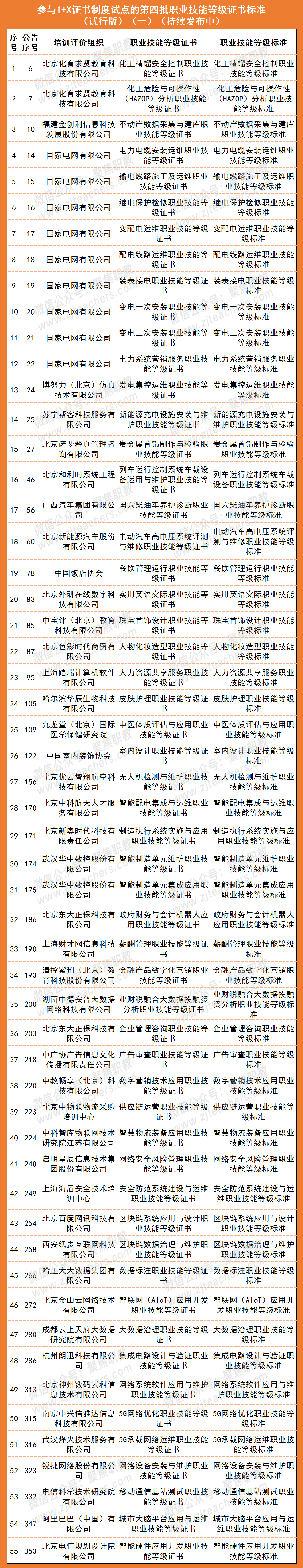 该名单正在持续发布中,本次发布了55个职业技能等级证书及标准。