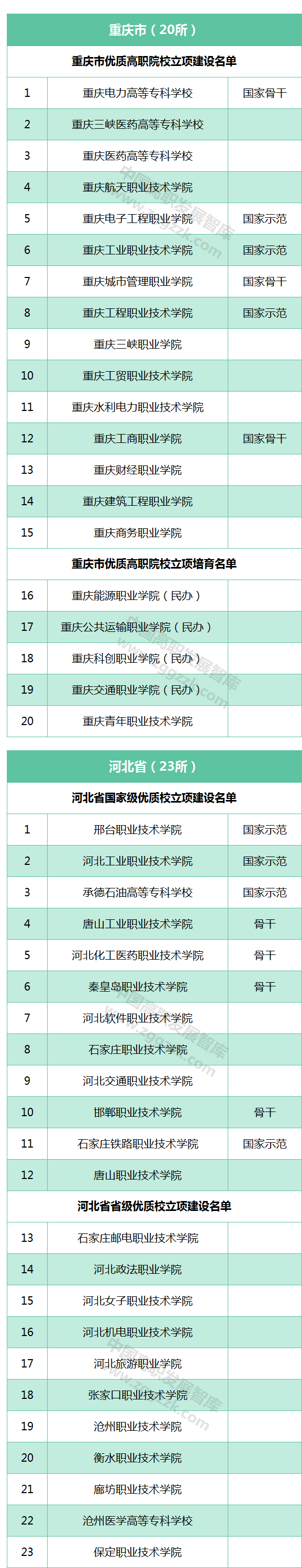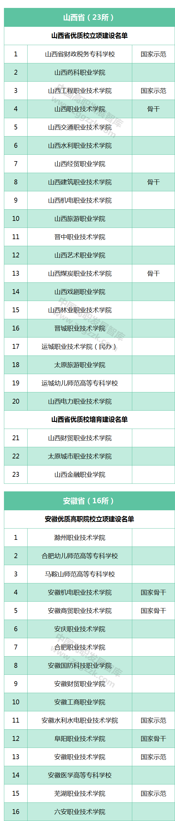 未来哪些高职院校有望入选“特高计划”值得关注。时下,各省正在致力于推进优质校建设,对多所办学基础扎实、优势特色鲜明,改革意愿强烈且有明显成效的院校进行重点建设。这些院校将是“特高计划”有力竞争者,本期高职发展智库整理了全国25个省市最新优质校立项建设名单。
