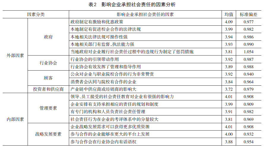 (一)企业承担职业教育社会责任的影响因素