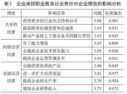 (四)企业履行职业教育社会责任对企业绩效的影响