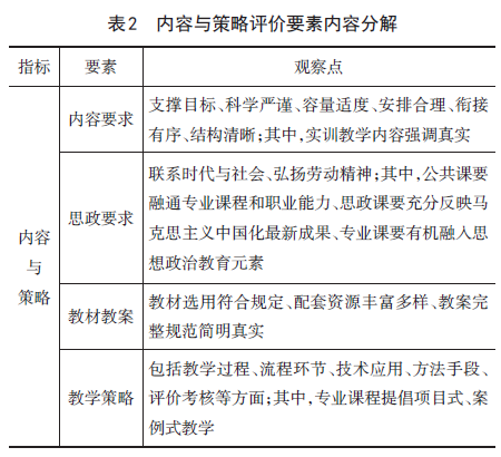 内容与策略是第2项评价指标,有4条评价要素、16个共性观察点、1个不同类型课程的个性观察点,具体内容见表2所示。