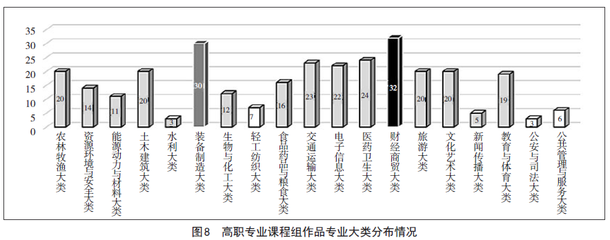 高职组专业课程一组、专业课程二组共有参赛作品307件,覆盖全部19个专业大类、142个专业,参赛作品所涉专业仅占770个高职专业的18.4%。