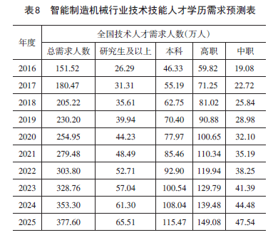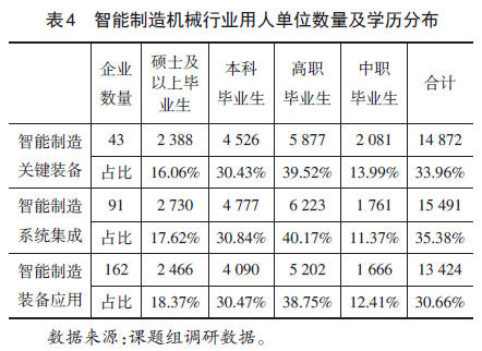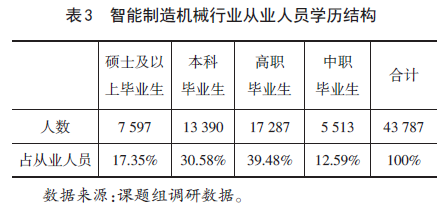 2.智能制造机械行业技术技能人员从业规模和学历结构