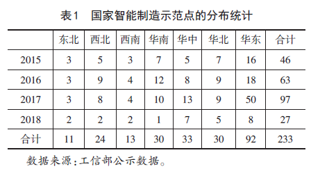 从区域布局看,由于全国各地经济发达程度不同,各区域的智能制造发展水平差距明显,国家智能制造示范点的分布不均衡。在长江三角洲、珠江三角洲、环渤海等经济发达地区,由于人工成本提高,智能制造“高质量、降成本、增效率”的优势,吸引许多制造类企业开展智能制造装备的生产和应用,智能制造配套技术相对成熟;而欠发达地区的智能制造普及率还不高,部分企业实现了“机器换人”,但没有实现网络化。